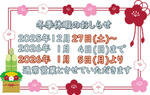 2024年よりカレンダー通りの営業となりました。
